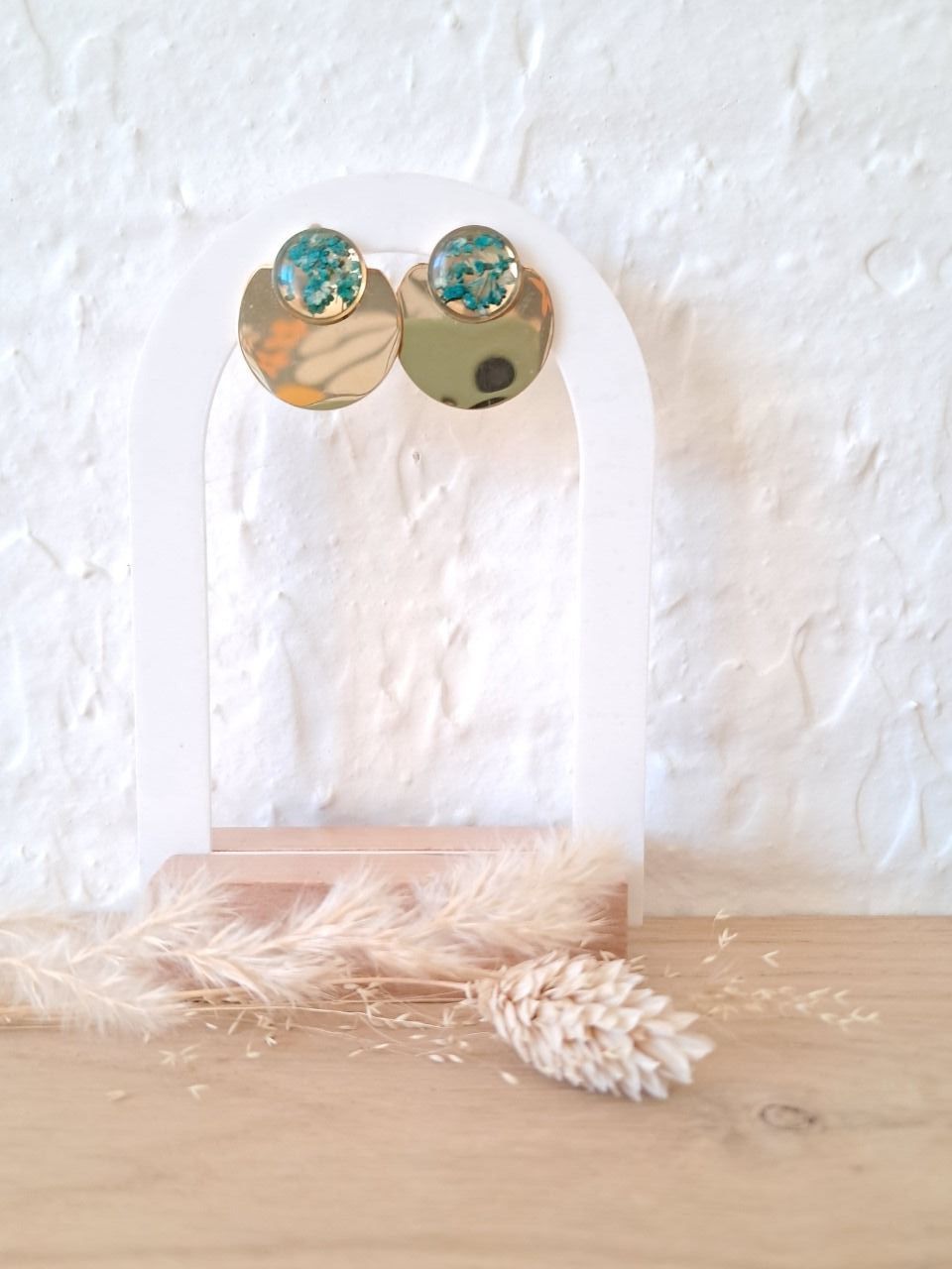 Boucles d'oreilles "miroir" en acier inoxydable avec inclusion de fleurs séchées