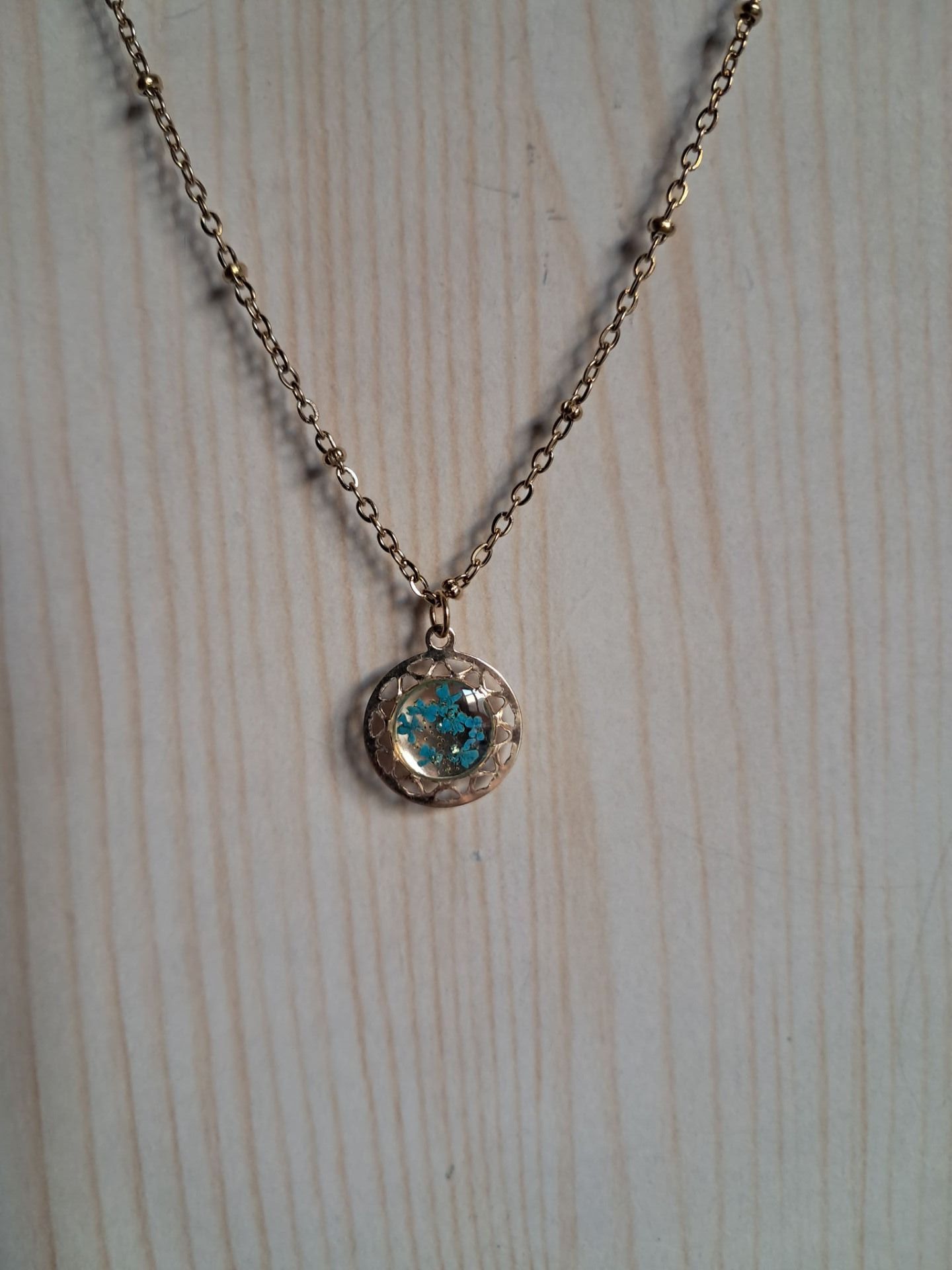 Collier rond (petit pendentif) en acier inoxydable avec inclusion de fleurs séchées Disponible en doré ou argenté - Longueur de chaîne classique Fait main avec amour Made in France
