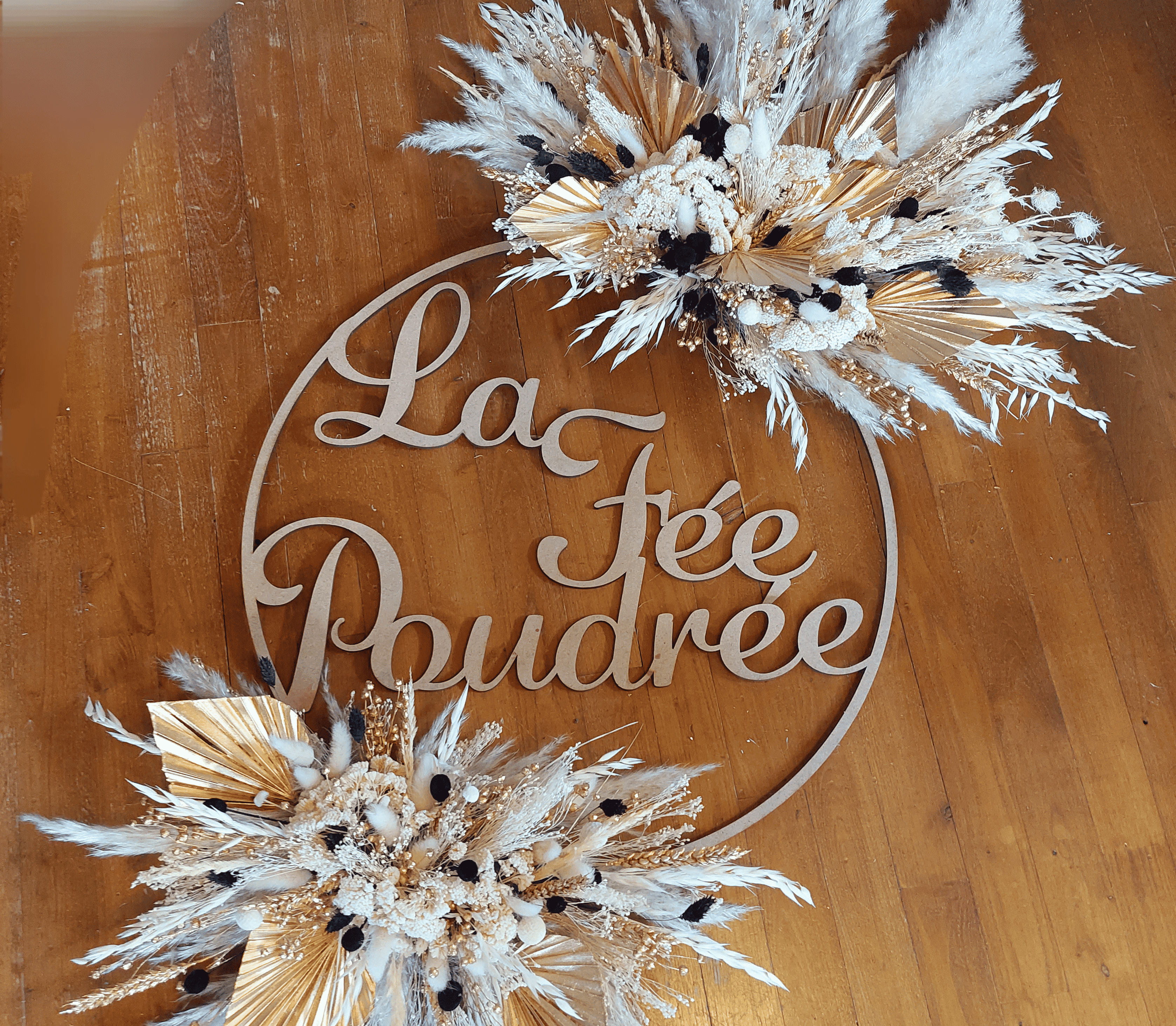 Couronne fleurie fait main - Fleurs françaises 4 tailles de couronnes différentes et demi-cercle fleuri ou tour complet au choix Possibilité de mot/prénom travaillé au fil doré sur la couronne Couleurs des fleurs à me préciser en commentaire