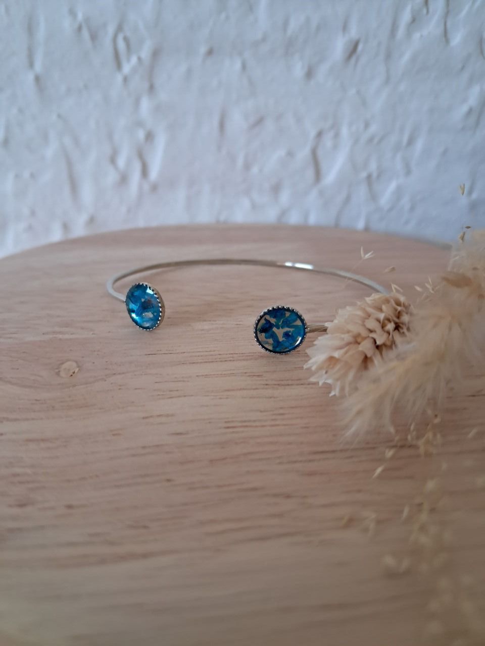 Jonc réglable "fin 2 ronds" en acier inoxydable avec inclusion de fleurs séchées